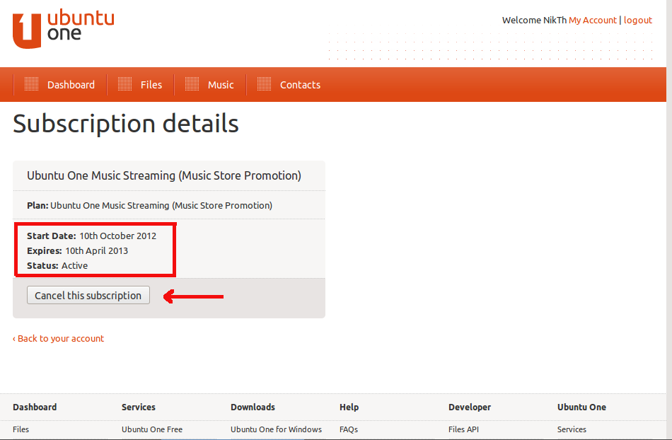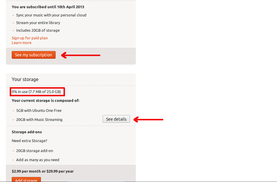 Αφού ολοκληρωθεί η αγορά μπορείτε να δείτε τα νέα στοιχεία (έξτρα χώρος , Subscription) και να διαχειριστείτε την συνδρομή σας από το MyAccount στο Ubuntu One.