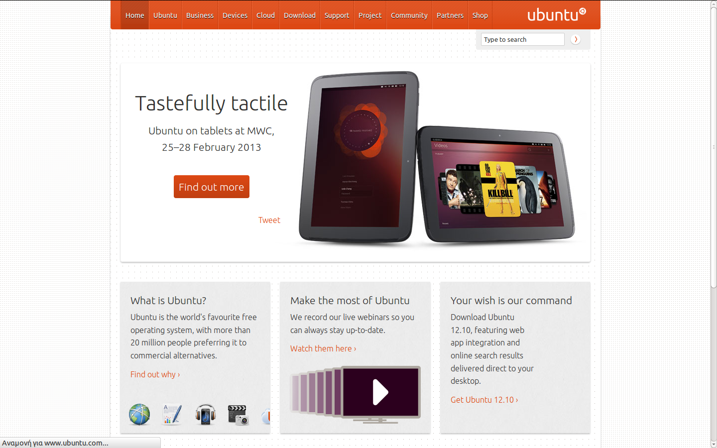 Εχει πει η Canonical οτι θα δωσει και τα απαραιτητα εργαλεια για flashing στις 21 Φεβρουαρίου μέσω του Ubuntu Developer site. Οι συσκευες που υποστηριζονται ειναι τα tablet asus nexus 7 και Samsung nexus 10 και τα κινητα Samsung galaxy nexus και LG nexus 4. Επισης οσοι ειναι στο MWC 2013 θα τους περνανε εκει δωρεαν το ubuntu.