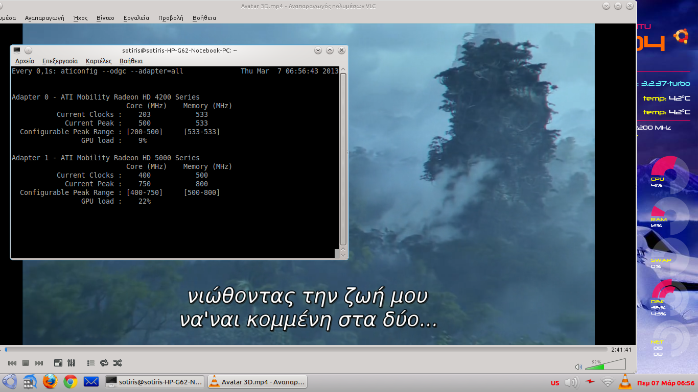 Με gnome-mplayer ανεξαρτήτως τύπου ταινίας καθώς και με vlc τα avi, παίζουν δροσερά γύρω στους 43 βαθμούς.