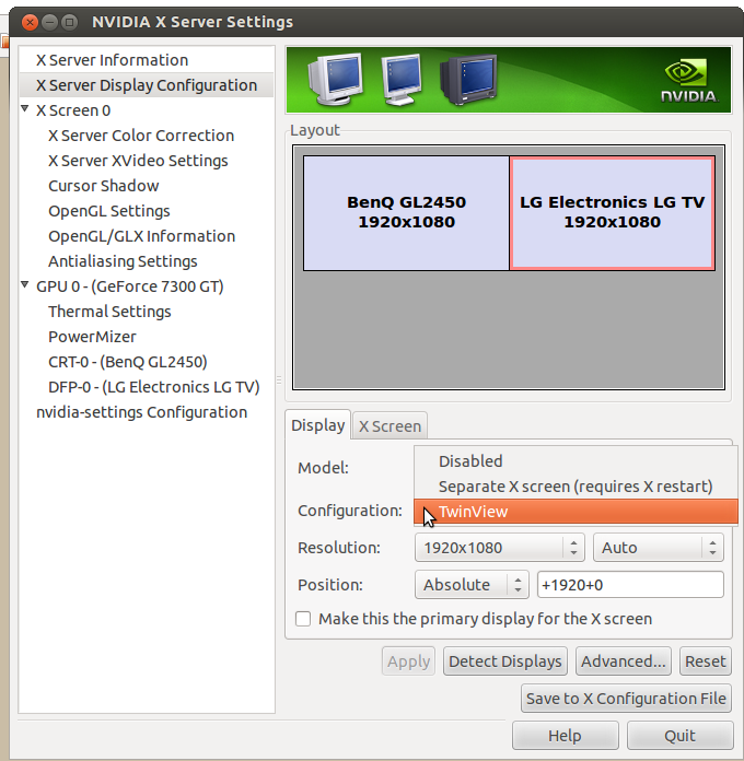 Δοκίμασε το "Apply" να δεις αν δουλεύει, αν και προτείνω επανεκκίνηση μετά από τις αλλαγές (ειδικά για την ενεργοποίηση του Twinview).