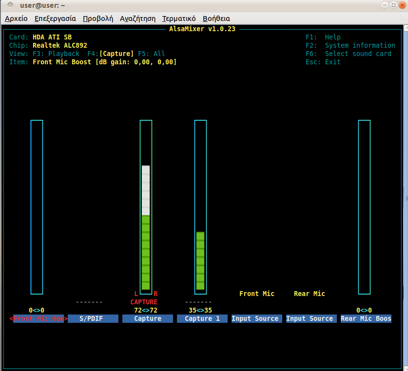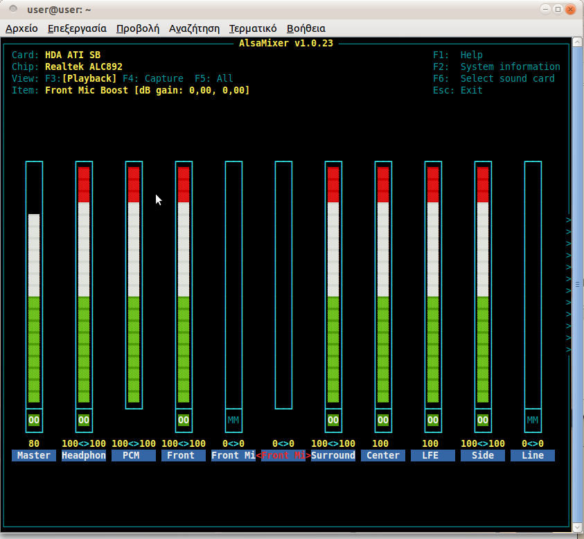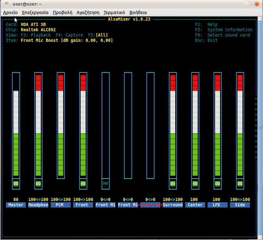 Front Left: 0 [0%] [0.00dB]