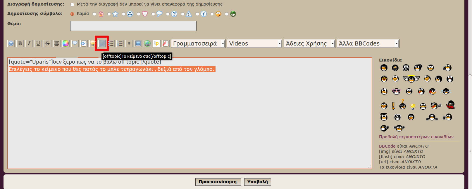 Επιλέγεις το κείμενο που θες και πατάς το μπλε τετραγωνάκι , δεξιά από τον γλόμπο. Κοίτα εδώ πως.