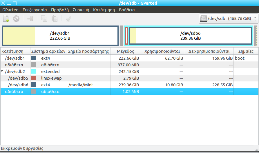 Και ακομη ποιο αναλυτικα με τις εικονες απ το GParted: