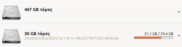 Δεν ξέρω πως να ψάξω για αρχεία inodes. Πάντως ενώ η εντολή "df -hi" δείχνει 100%, ο αναλυτής δίσκου δίνει τα παρακάτω: