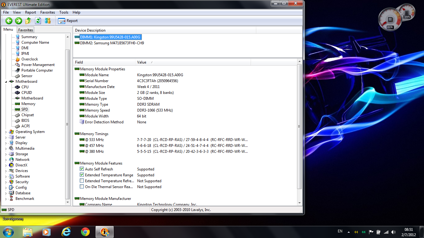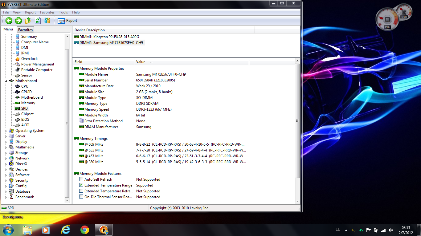 Επανέρχομαι για να πω ότι μου χάλασε η μια μνήμη (αυτή που άλλαξα, οπότε υπήρχε εγγύηση) και αφού τις κοιτάξαμε με τον τεχνικό, είδαμε ότι ήταν και οι δύο στα 1066. Δηλαδή το τερματικό τα έλεγε σωστά και το everest λάθος. Δοκιμάσαμε και μνήμη με 1333 και το laptop δεν τις δεχόταν(μαύρη οθόνη).