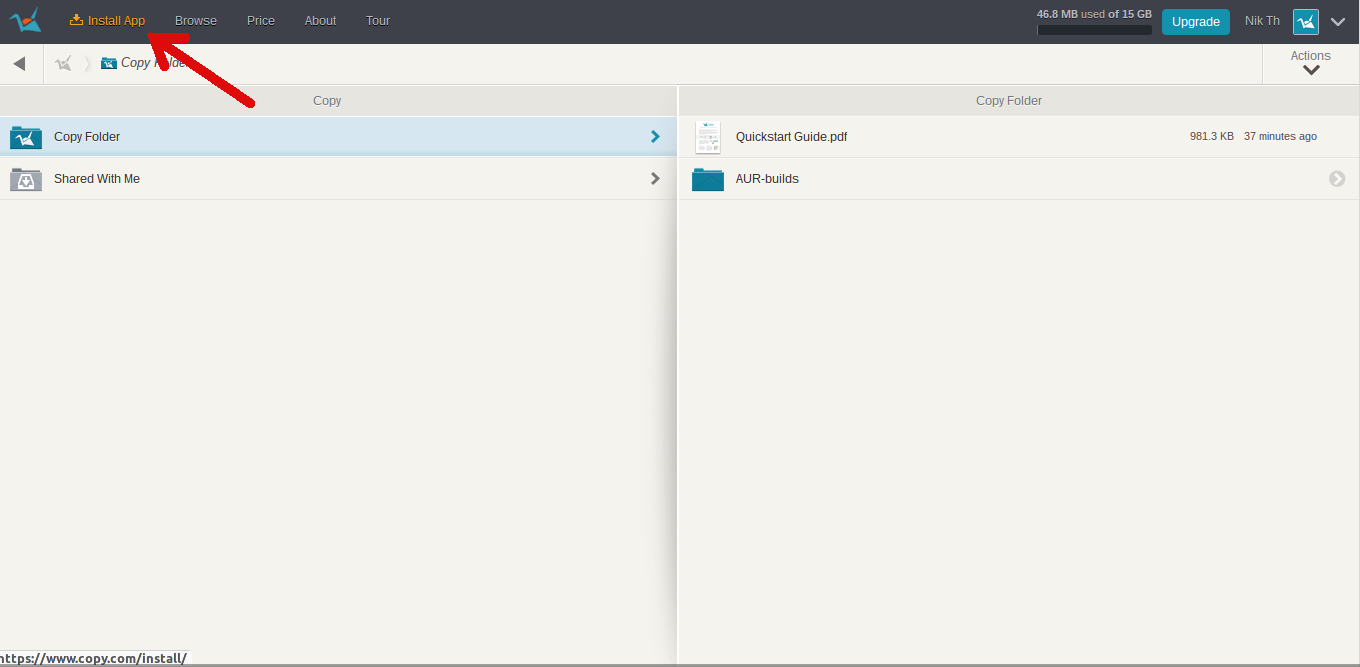 Αυτό που μας προσφέρει το Copy είναι 15GB δωρεάν χώρου στο cloud για να αποθηκεύουμε τα αρχεία μας. Η διαχείριση μπορεί να γίνει είτε από έναν browser, είτε από μια εφαρμογή που διαθέτει για όλα τα λειτουργικά συστήματα (και Linux).