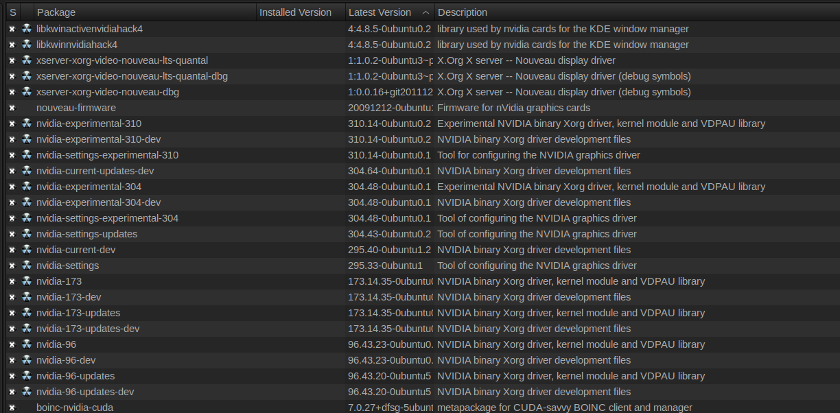 dpkg -l | grep -i nvidiasudo apt-get install nvidia-current nvidia-settings