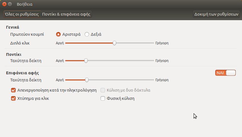 Πώς δεν έχει; Δεν σου βγάζει στις Ρυθμίσεις Συστήματος>Ποντίκι και επιφάνεια αφής τις σχετικές ρυθμίσεις για την ταχύτητα του δείκτη του ποντικιού;