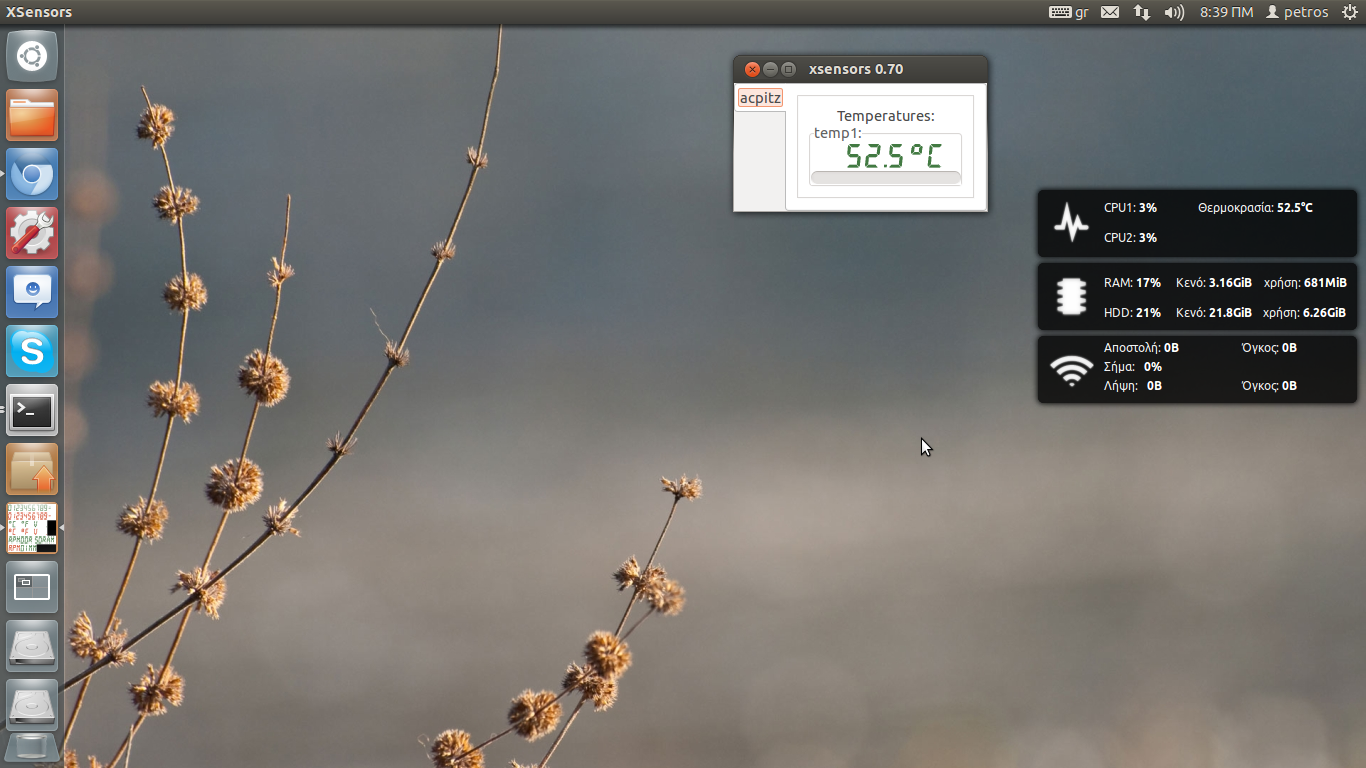 ${goto 92}CPU1: ${font Ubuntu:style=Bold:size=9}${color1}${cpu cpu1}%${font}${color} ${alignr 50}Θερμοκρασία: ${color1}${font Ubuntu:style=Bold:size=9}${color1}${execi 30 sensors | grep 'temp1' | cut -c15-16}°C${color}${font}