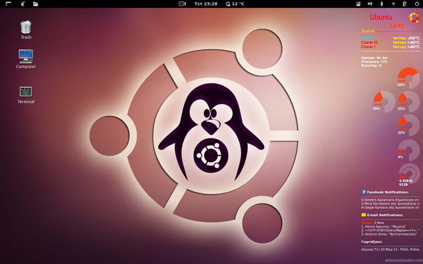 επισης βρηκα ενα script για να εμφανιζει τις ενημερωσεις του fb στο conky