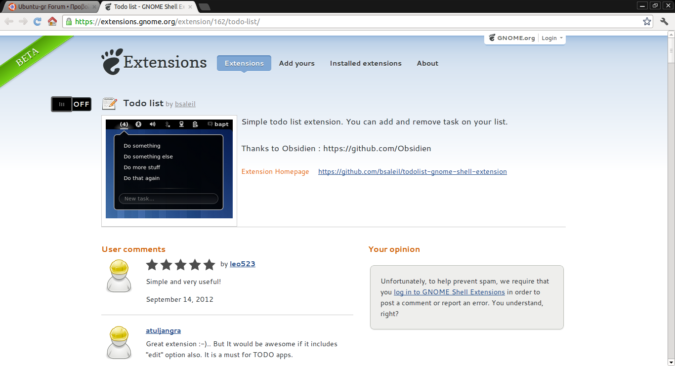 Στα advanced settings στα Shell extension δεν υπάρχει κάτι για να ενεργοποιήσω. Επίσης στο local/share δεν υπάρχει φάκελος gnome shell extensions. Πρέπει να δημιουργήσω ένα φάκελο και να βάλω μέσα τα αρχεία του todo-list; Υπάρχει κάποιος τρόπος να ενεργοποιήσω αυτό το πρόσθετο;