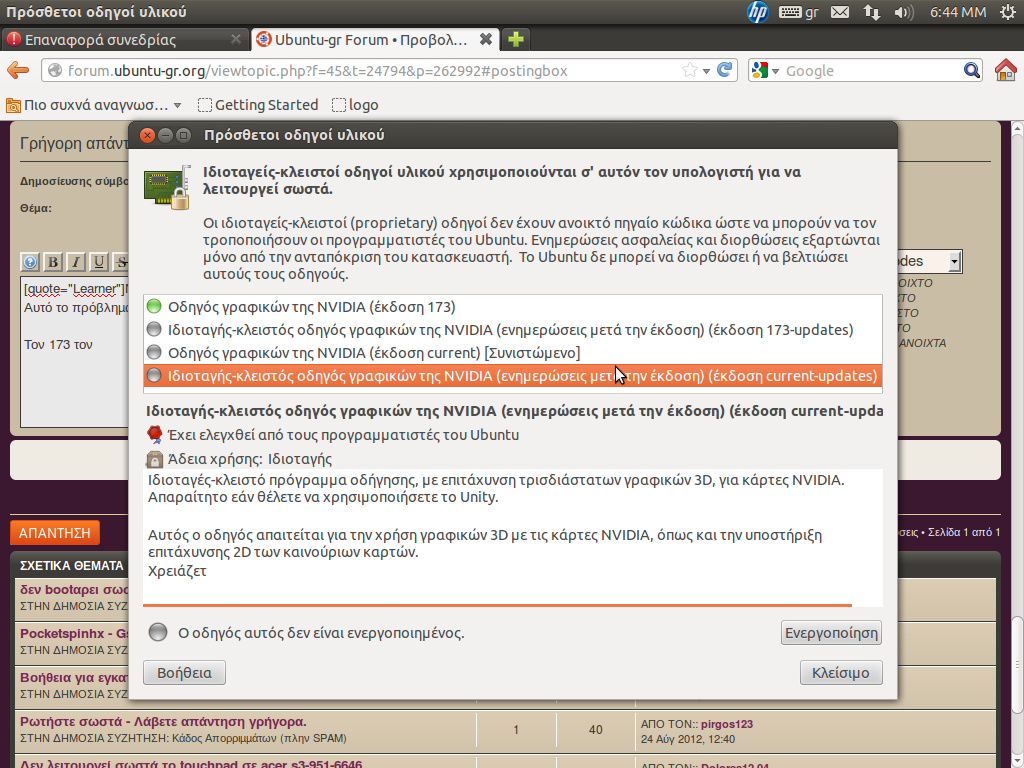 Ναι , βλέπω πως είναι μέσω PPA η έκδοση Nvidia που έχεις , μήπως να δοκίμαζες τον Nvidia-173 ;