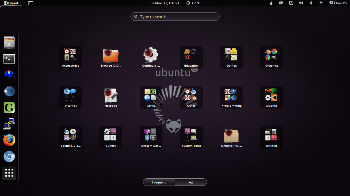 Παρατηρούμε πως μερικές εφαρμογές, στη συγκεκριμένη περίπτωση αυτές που αφορούν το wine, δεν έχουν κατηγοριοποιηθεί και αυτό διότι στο GNOME 3.8 αυτή η λειτουργία δεν έχει αναπτυχθεί πλήρως και θα βελτιωθεί είτε με μελλοντικές ενημερώσεις, είτε στην επόμενη μεγάλη αναβάθμιση του GNOME (3.10).