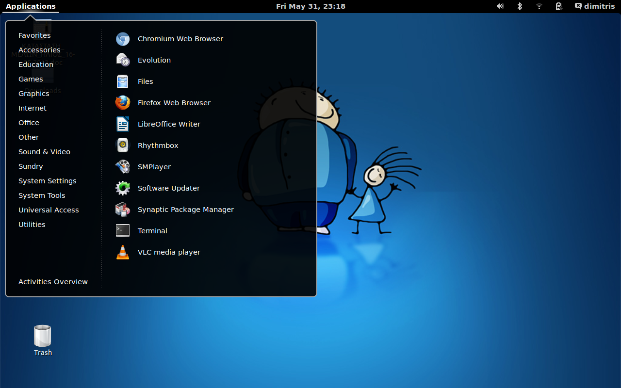 Aμέσως μετά, πηγαίνοντας στο Overview του Gnome-Shell βλέπουμε πως οι κατηγορίες μας δημιουργήθηκαν και αυτόματα έχουν μπει μέσα οι αντίστοιχες εφαρμογές.