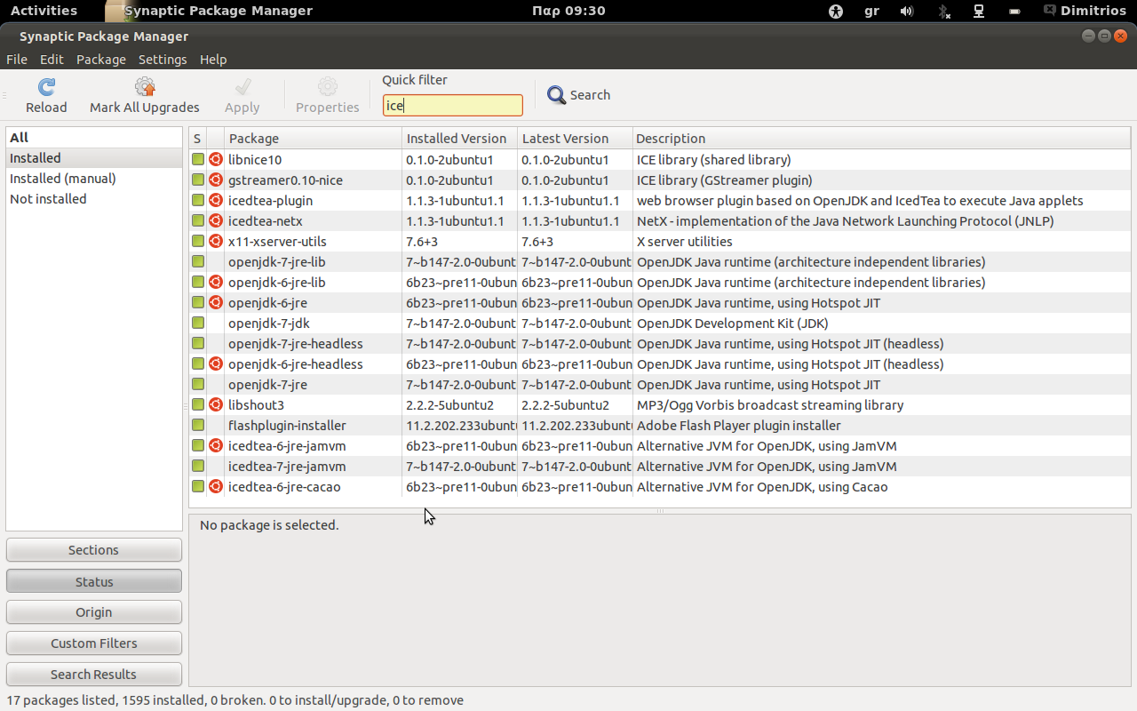 Επίσης, από το synaptic εγκατέστησα, εκτός από το openjdk-6-jre και τα συναφή (τα οποία ήταν ήδη εγκατεστημένα μάλλον από την προηγούμενη διαδικασία, που περιγράφω), και τις αντίστοιχες εκδόσεις των πακέτων αυτών σε έκδοση 7.