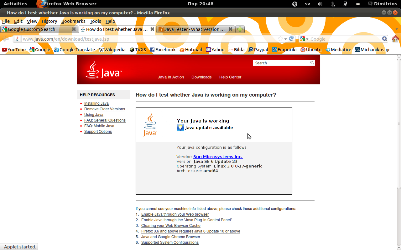 τότε θα σε προτρέψει να βάλεις το κατάλληλο πακέτο. Αν έχεις π.χ. OpenJDK 7, βάζεις IcedTea Java Plugin 7.