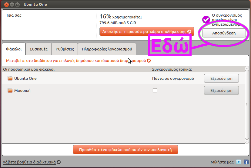 bobos73 έγραψε:παιδια εχω μια απορια. μεσα στο ubuntuone εχει για συνχρονισμο μια επιλογη που δεν καταλαβαινω. λεει ......deja-dup/george-system. τι ειναι αυτο? τι συνχρονιζω?