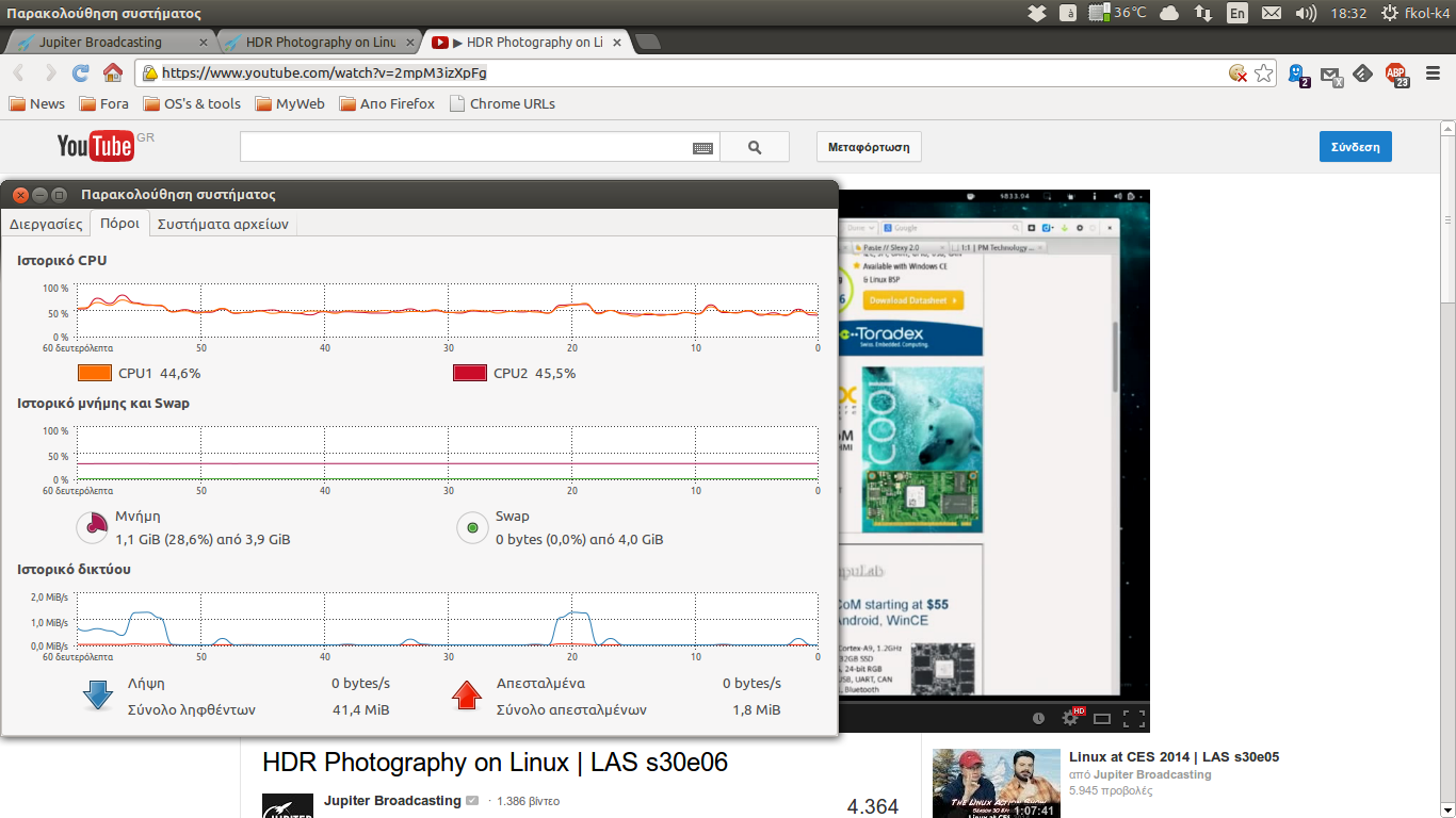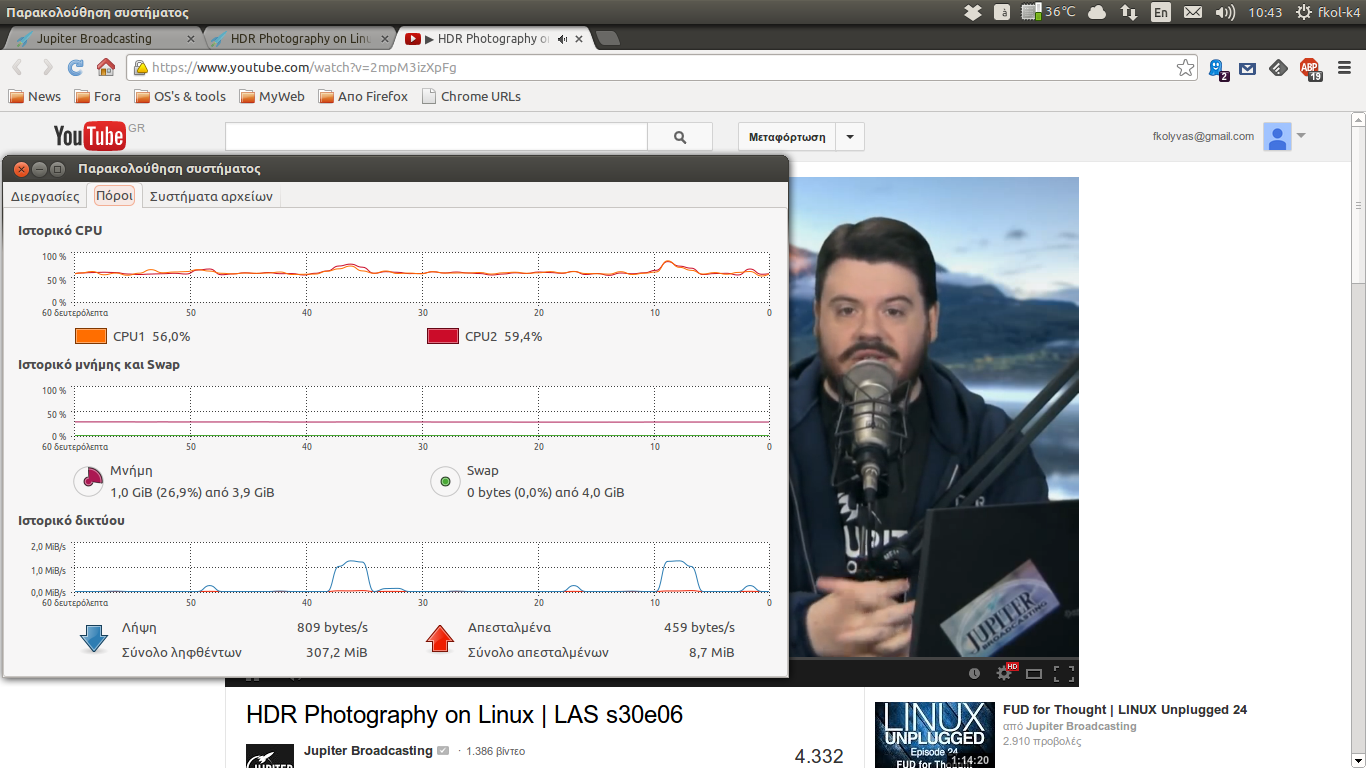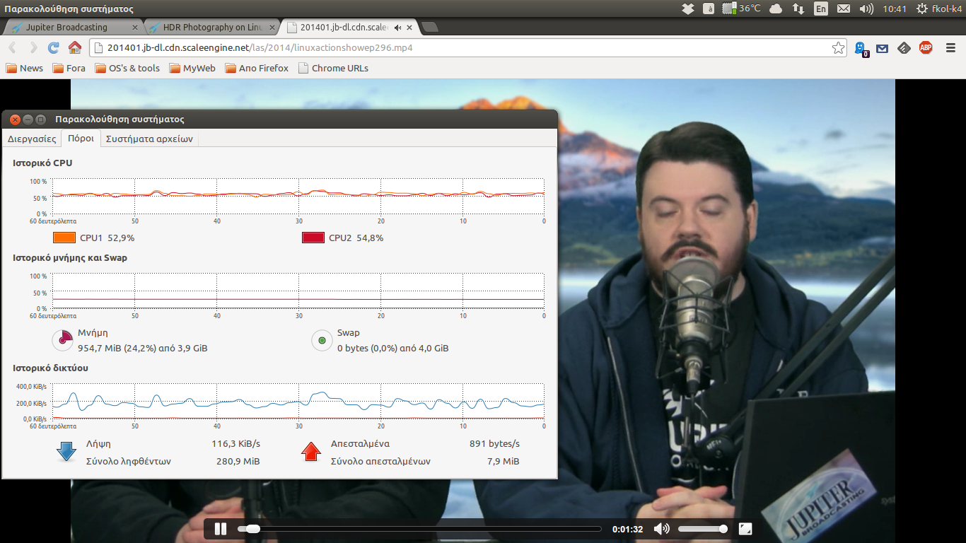 Ο έλεγχος γίνεται βλέποντας μερικά βίντεο -τα ίδια πάντα- χωρίς να τρέχει κάτι άλλο στο σύστημα μας και έχοντας την παρακολούθηση συστήματος ανοιχτή, σημειώνουμε τα αποτελέσματα. Μην ξεχνάμε κάνοντας δεξί κλικ πάνω στο βίντεο ότι μπορούμε να δούμε πληροφορίες όπως, ποιος είναι ο player και τι έκδοση(του flash)