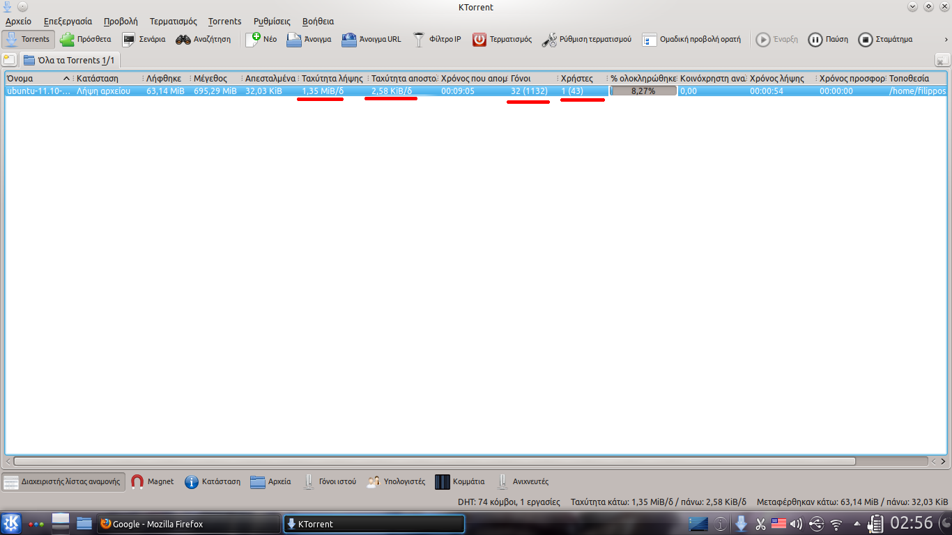 Έκανα τις ρυθμίσεις που είπες στο ktorrent. Για κάποιον λόγο νιώθω ότι πάει καλύτερα το ίντερνετ στον browser ενώ κάνω downloading ταυτόχρονα, δεν ξέρω που οφείλεται ακριβώς. Εντάξει, με λίγη δοκιμή μέχρι στιγμής μόνο αν κατεβάζω με 1 mb και κάτι το δευτερόλεπτο αργεί το ίντερνετ στον browser.