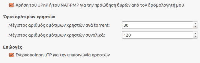 * Ενεργοποίησε τα PEX, DHT, μTP/uTP, UDP κλ.