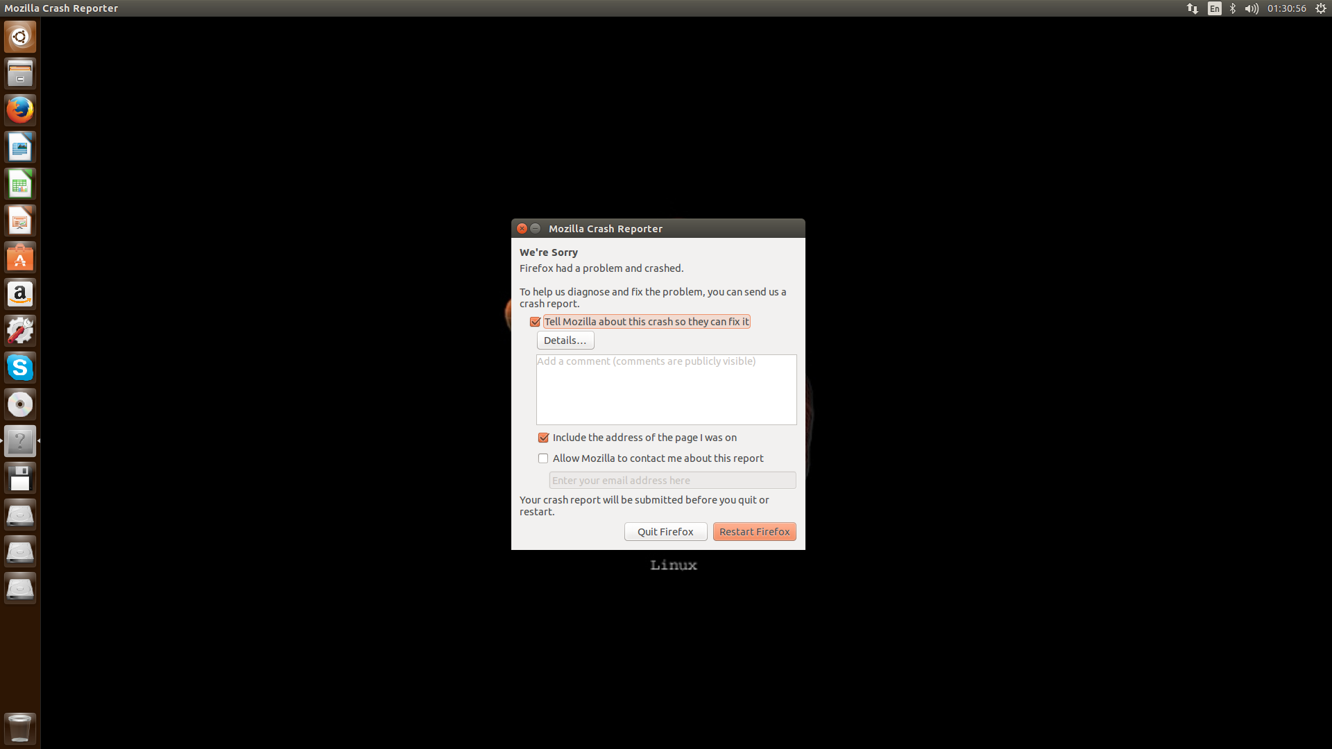 Καλημέραα,,το shockwave flash είναι η έκδοση 13.1 r2,,για την εντολή firefox -ProfileManager αν εννοείς να την δώσω από το τερματικό μου εμφανίζει το εξής:(process:3583): GLib-CRITICAL **: g_slice_set_config: assertion 'sys_page_size == 0' failed,,ανοίγει ο firefox και μόλις πήγαινω να μπω το εμφανίζει πάλι,,η έκδοση του λειτουργικου είναι η 15.04 δηλαδή η πιο πρόσφατη,,και του mozila είναι η 40.0,,είναι ενημερωμένα και τα 2..Τι μπορεί να φταίει;