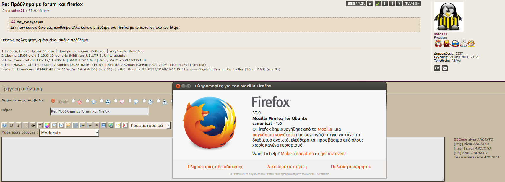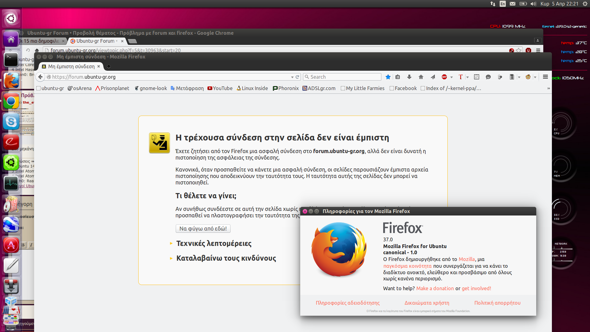 Πήγα στις προτιμήσεις - Για προχωρημένους - Προβολή πιστοποιητικών - Εξυπηρετητών και αφαίρεσα το StartCom Ltd. που περιείχε τα StartComClass1PrimaryIntermediateServerCA και το forum.ubuntu-gr.org