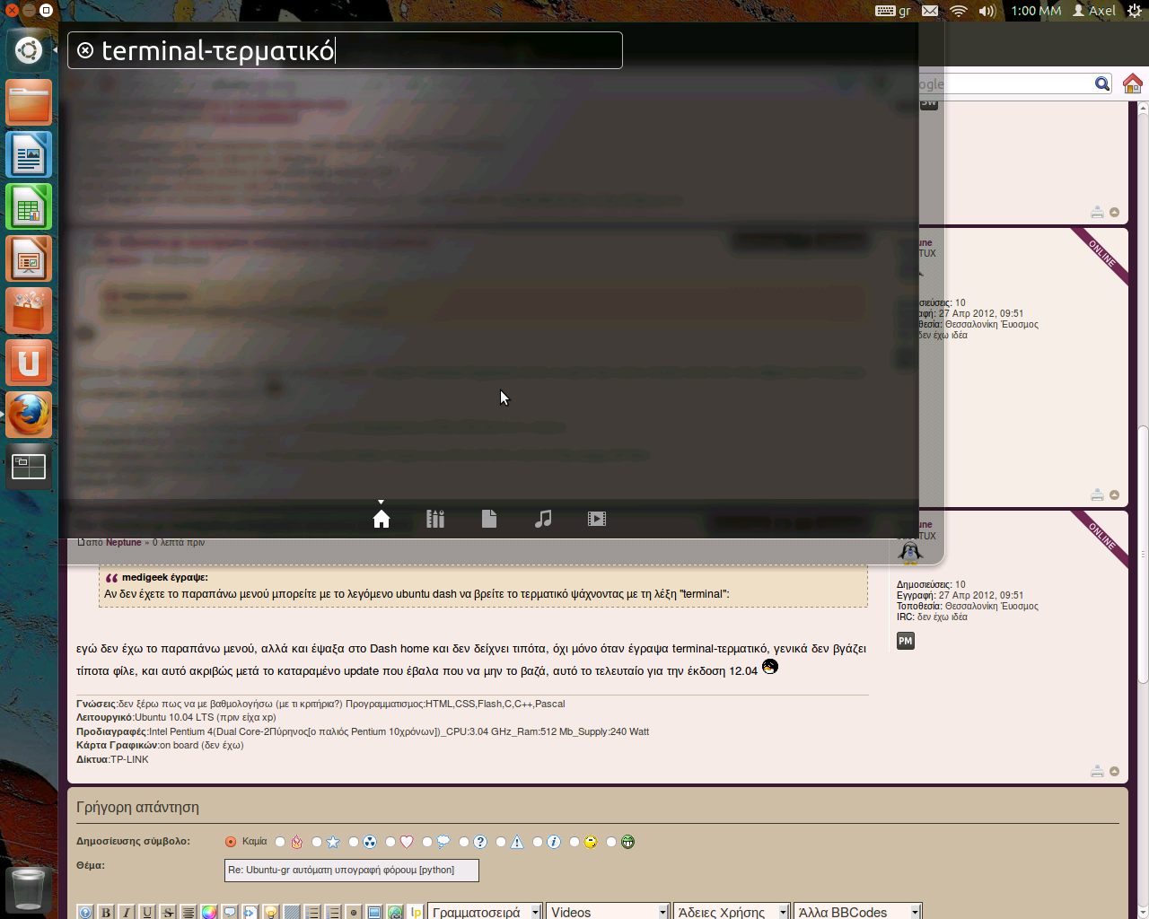 medigeek έγραψε:Αν δεν έχετε το παραπάνω μενού μπορείτε με το λεγόμενο ubuntu dash να βρείτε το τερματικό ψάχνοντας με τη λέξη "terminal":