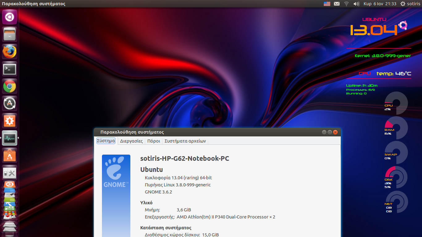 Κοίτα το conky τώρα έχω μιάμιση ώρα uptime και 15% χρήση μνήμης