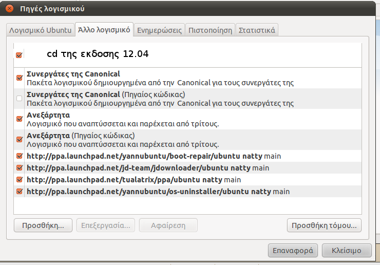 Αυτη η αλλαγη (περιπου )στις πηγες λογισμικου μου εμφανιστηκε σε περιβαλλον 11.04 οταν εκανα ενημερωση αναβαθμισεων.
